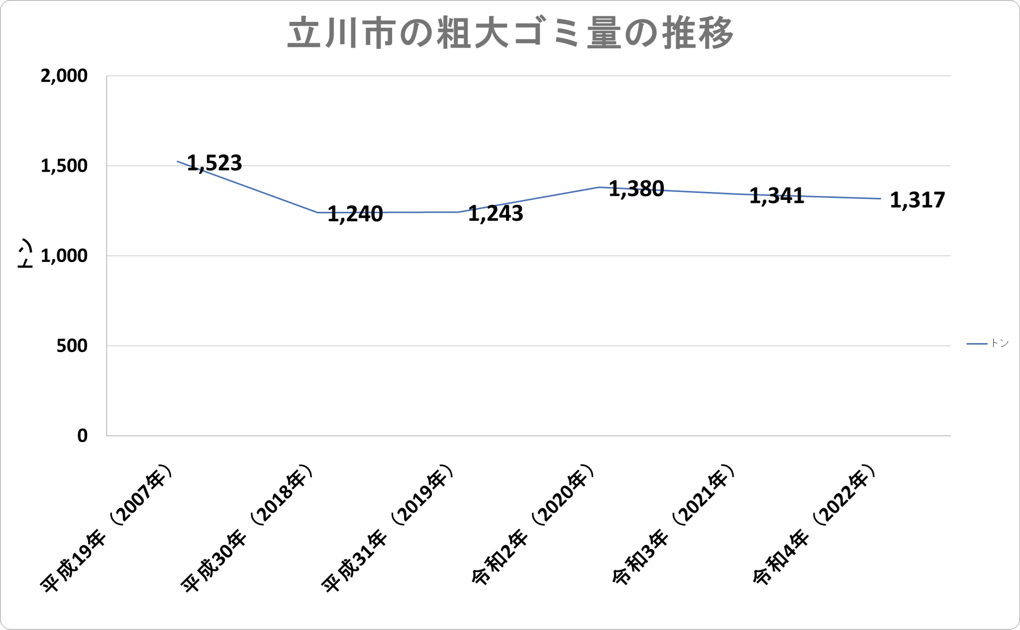 立川市における粗大ゴミ量の推移は、次の通りです。