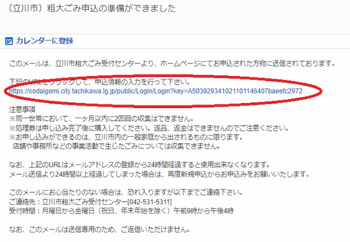 | 追加や変更の期限 | 収集日の前日正午まで。粗大ごみ受付センターに連絡する。(収集日前日が祝日だった場合は直近の開庁日まで) |