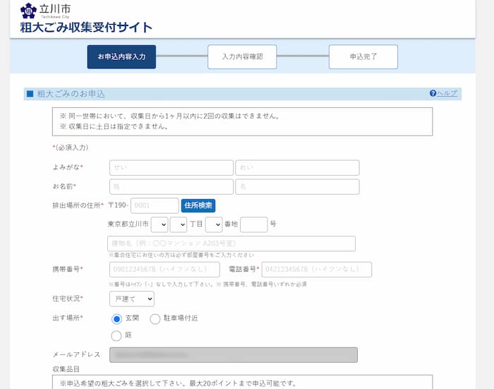 | 再度の収集について | 収集日から1ヶ月以内は、同一世帯における再度の収集は不可 |