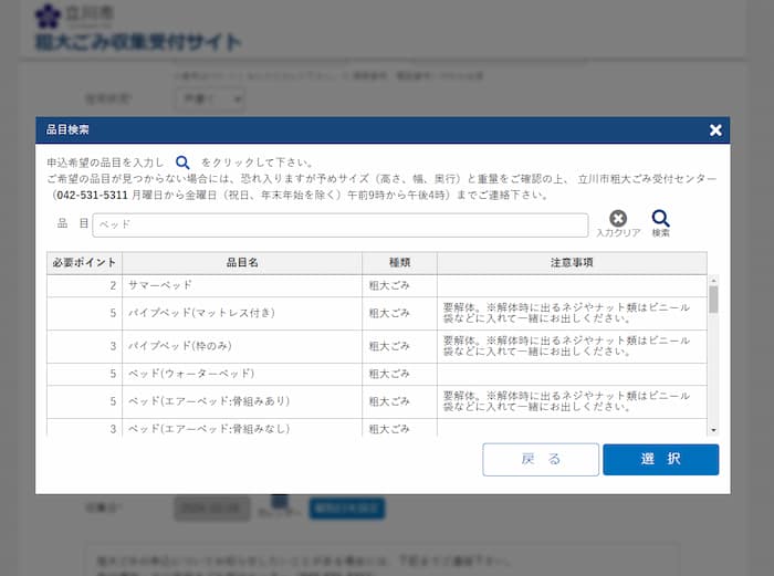 なお、収集日から1ヶ月以内は再度依頼ができません。20ポイントを超える量の粗大ゴミを出す際は、出す順番を考えたり他の方法を検討したりしましょう。