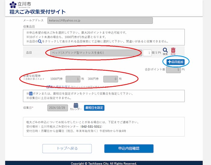 申し込みが完了しましたら、続いては粗大ごみ処理券の購入です。立川市では、粗大ごみ処理券の購入後に粗大ゴミへ貼り付けて出すことが決まっています。