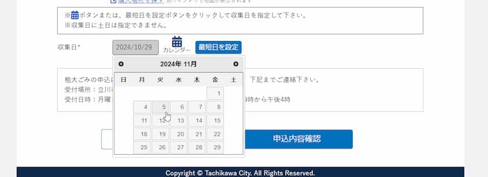 | 収集日 | 申し込み後、7日~約2カ月後までが選べる |
